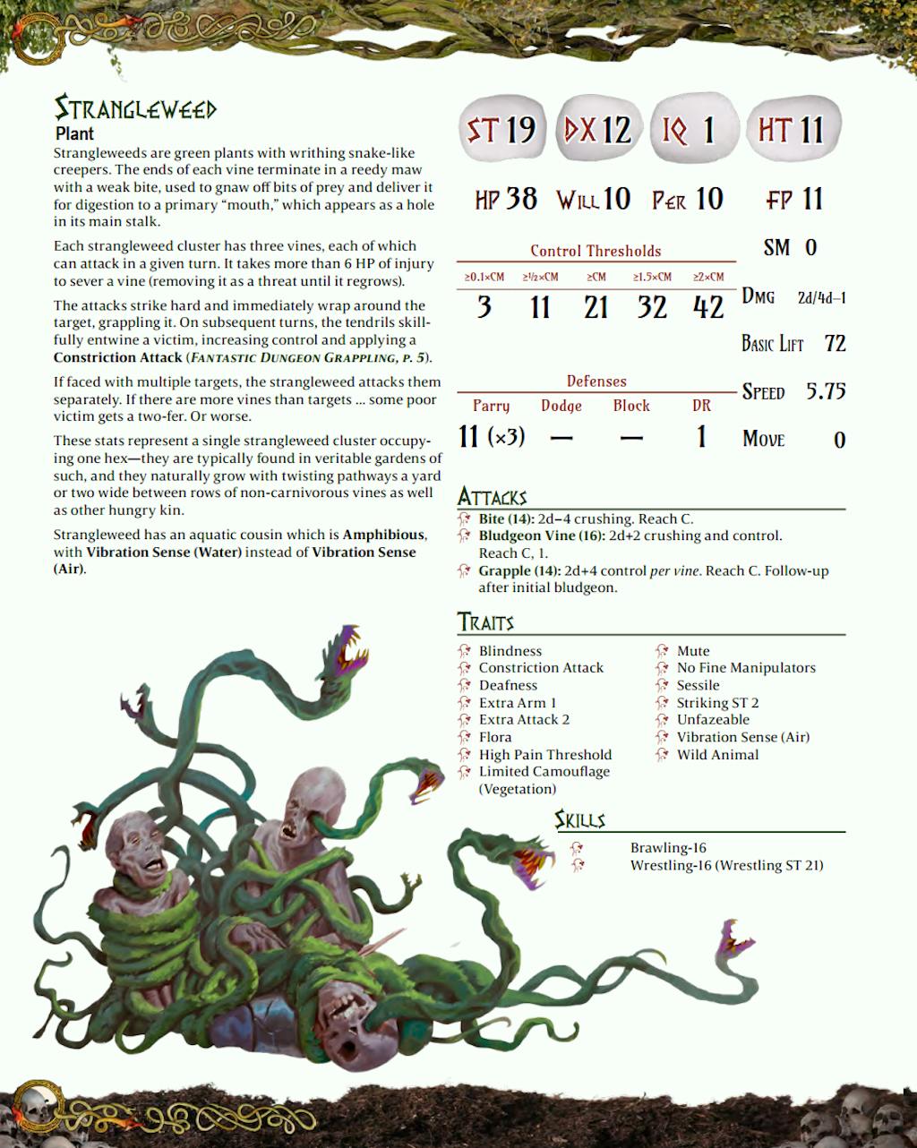 now has a cover.Much of his work for this commission was for the serpents book, as I try and assign artists the same interior pieces that feature on teh cover, for consistency. But he also did what were originally called Clinging Vines and are now called Strangleweed, mostly because I needed to move a monster from A to B because of facing-page issues on layout, but also strangleweed just sounds cooler.